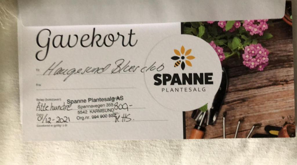 Gavekort hos Spanne Plantesalg. Verdi 800,-